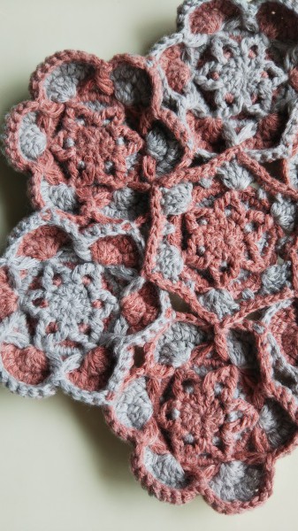 1つ前の作品を、六角形に変えて、ドイリーにしました。残り糸を全て使いきりました。
