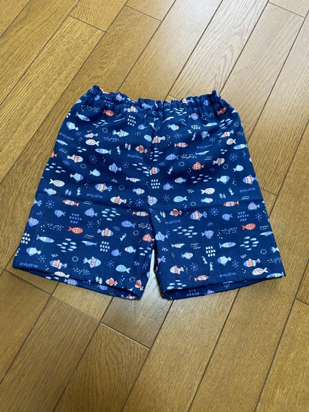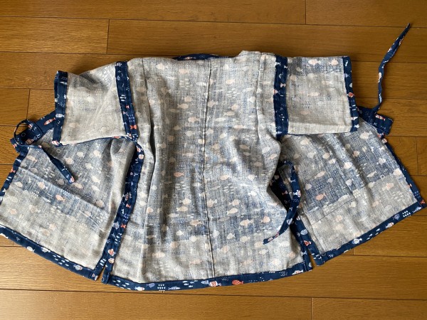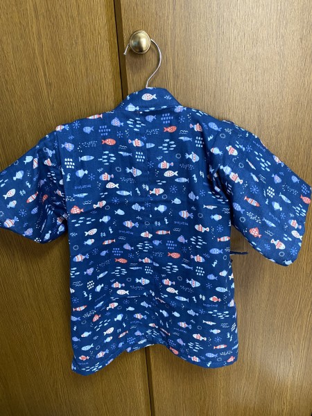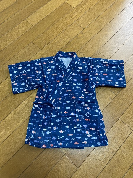 孫が選んだ生地で作った甚平さんと巾着袋。生地はダブルガーゼ。