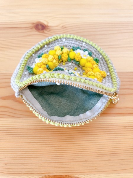 一年前に作ったホビーラホビーレのキット「ミモザのポーチ」です♪細かいパーツの配置が難しかったです。使いやすいように内布を自前で付けました。