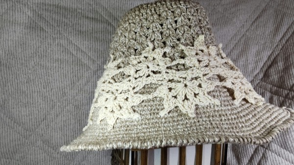 | 帽子修正版 以前完成させた帽子の修正をしました。 麦わら帽子風からバケットハット風に変更し、飾りも紐からモチーフに変更しました。 |