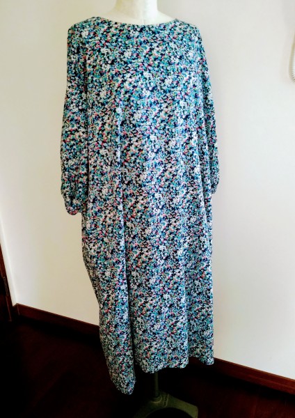 袖と見頃をたっぷり取ったロングワンピースを作りたくて 1m¥680で買えたので練習にと思い縫いました。お出掛けにも着て行けるお気に入りの作品になりました。