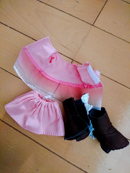 ディズニーストアのぬいもーずに春らしいピンクの服を作りました。