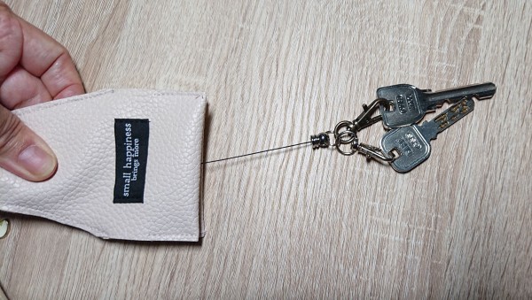 軽くて使いやすいキーケースが欲しくて作ってみた。100円ショップのリールキーリングを使ったのがポイント。余った合皮で作ったけど、ラベルをつけたらちょっとおしゃれ度が上がったかな?
