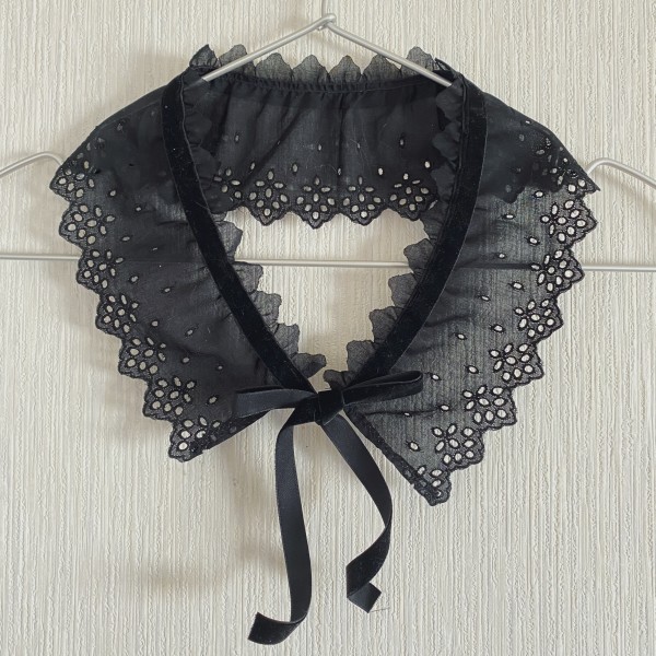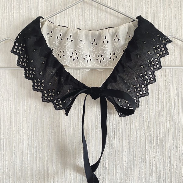 白と黒のリバーシブルで使えるコットンレースのつけ襟です。