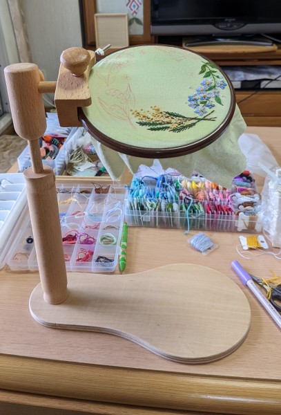刺繍スタンドは母の日に娘から贈ってもらったもの。