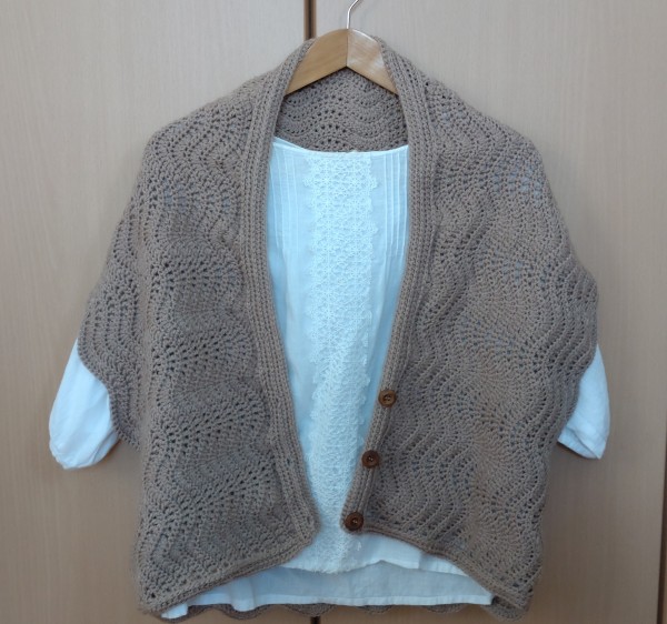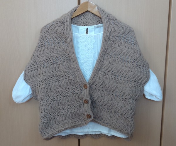| cotosonさんのまっすぐ編みベストを参考に編み始めました。 cotosonさんはグラデーション モヘアで わりと細めだけどフワッとやわらかそうな感じに編んでらっしゃいますが、私はもう少しざっくりした感じにしたかったので並太の糸を使いました。 前立は引き上げ編みではなく中長編みの模様編みにして、糸がギリギリ足りる所まで編みました。 何とか形になって良かったです。 首周りがもたつくのが嫌で目数を減らしたりして編みながら結構微調整して いい感じに仕上がりました♬ ボタンを止めてもいいし、開けたらショールを羽織った感じにも見えて それもいいかも。 |