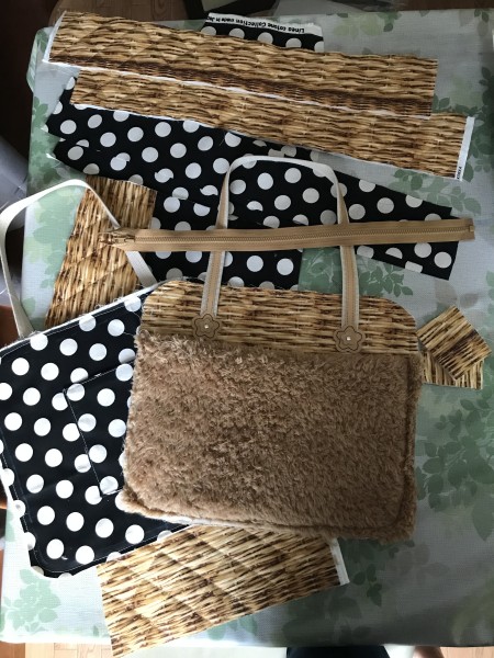 秋冬へむけて、モフモフ、キルティング生地にチャレンジ。内側にもポケットをつけて、水玉柄で可愛くできました。