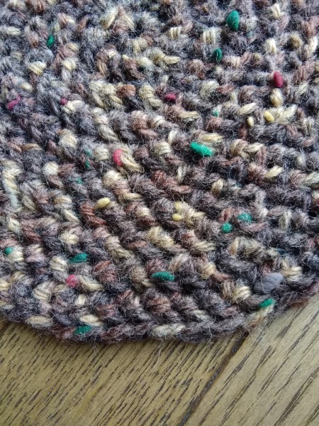 糸は貰い物の太めの段染め糸、ヘリンボーンが目立たないなあ