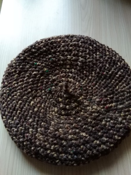 | 【ヘリンボーン長編みのベレー】 「冬のかぎ針あみこもの」本より 初めて見る編み記号、ヘリンボーン長編みを編んでみたくて |