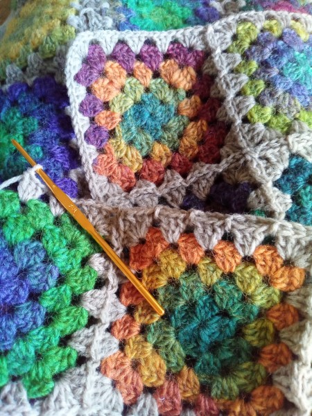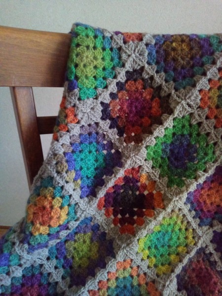 モチーフを繋ぐ毛糸と縁取りの糸の色はとても悩みましたが、結果まとまってよかったです。