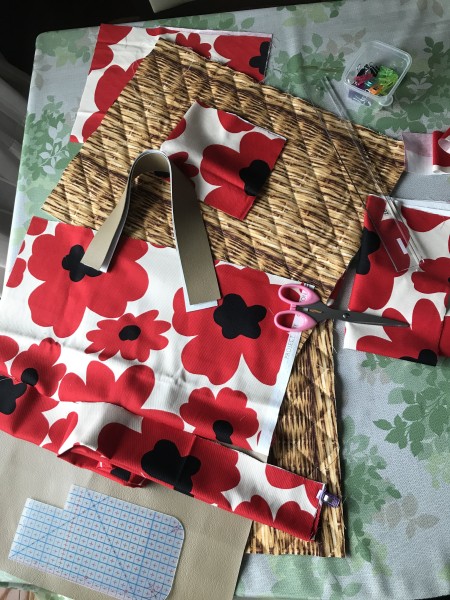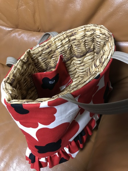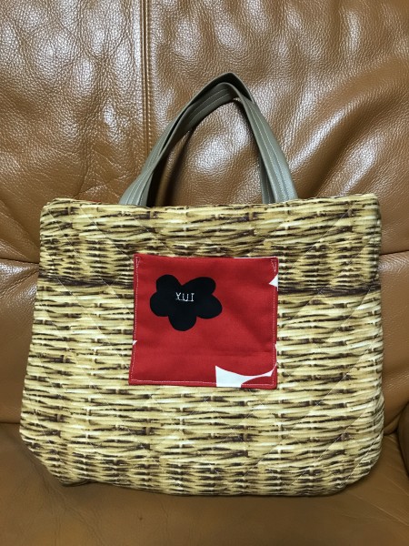 底と持ち手は合皮の布で切り替え。