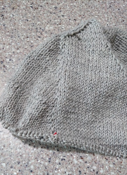後ろ身頃は前に進む引き返し編み2段、3段、5段、7段、10段で作り、緩やかなフィッシュテールになりました。