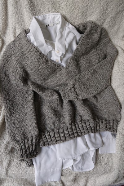 | オンザビーチというシンプルなVネックのトップダウンセーターを作りました。 | |