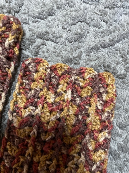 レッグウォーマーを編みました。長めにしてみました。あみたきchannelさんの動画を参考に。