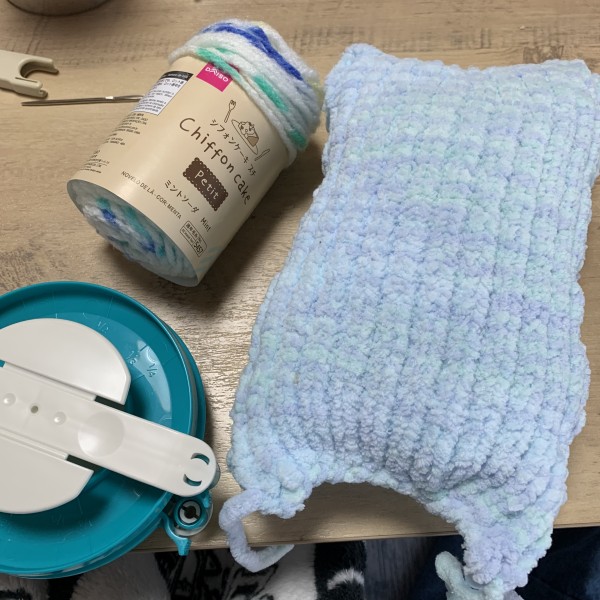 毛糸DAISOあむころヘブンリーブルー1.5玉分。
