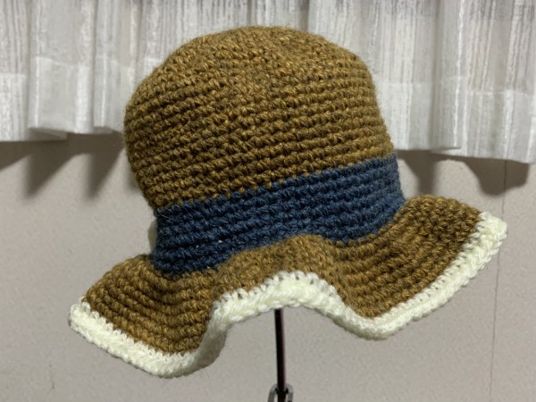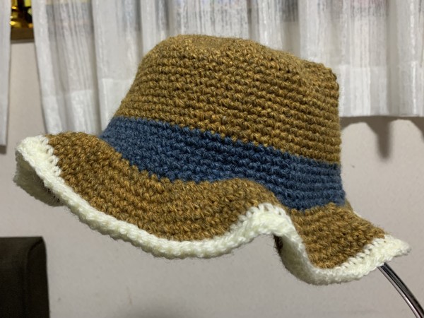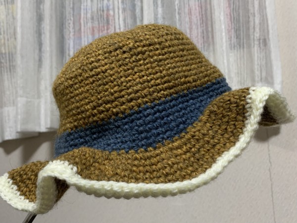 娘のリクエストでインスタで見つけたフリフリのバケットハット。編み図がなかったので増し目を考えながら作りました。