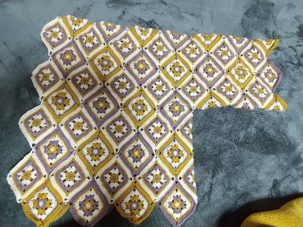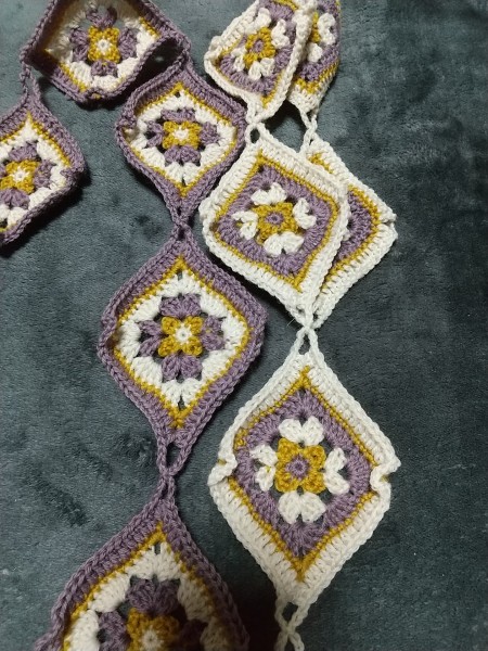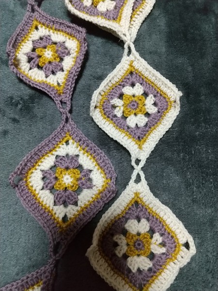 モチーフを編みながら繋げていく。13枚編み繋げました。130枚編まないと…あと117枚!頑張ります。