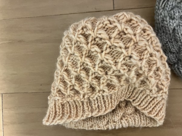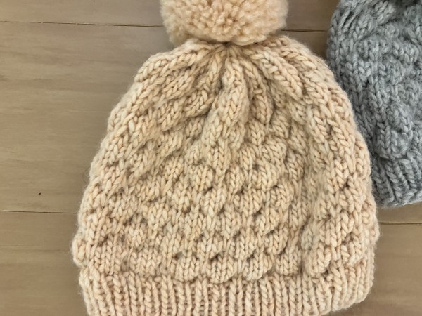 バブルステッチのニット帽を編みました