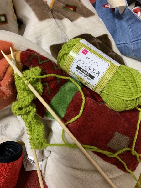 編む編む編む。グリーン系、