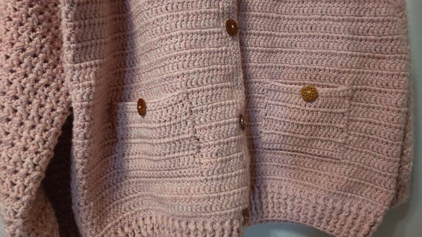| リカちゃんねる編み物部さんの、フード付きベストを、袖をつけて作成しました。 結構な重さですが、氷点下の倉庫や、お弁当を買いに行く時羽織るのに活躍しそうです。 全体は長編みで、袖は長編みの交差で模様にしています。 前たてとポケットの上下は伸びないように細編みです。 やはりかぎ針は毛糸を使います、百均の毛糸とはいえ、これだけの毛糸量だとなかなかの金額ですね… 屋内用のカーディガンというより、外出用の上着と言えそうな厚みです。 途中、ほどいて針の号数を上げて、ふんわり編み直そうかと迷い、放置してみたりもしました。(途中経過がないのはその迷いのため) 編んでる間に職場が変わり、寒い倉庫に行くことが増えて、使用する場所ができて良かったです。 |