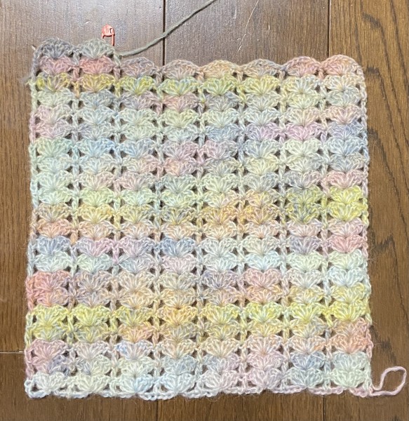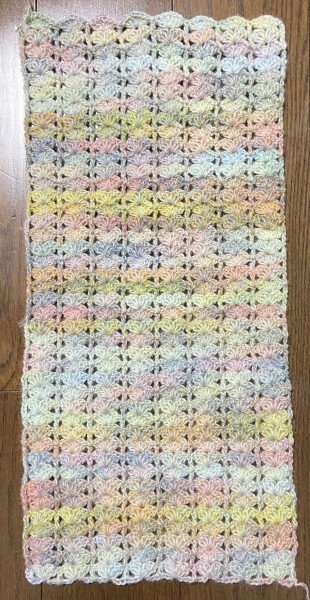 2玉分編めました。全体で7玉分ぐらい必要になりそうなので、ある程度編んだら毛糸を買いたそうと思います。