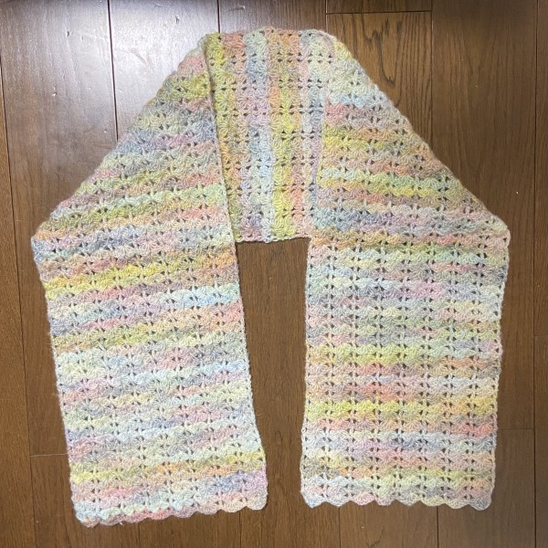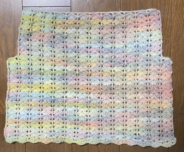 マフラーの様ですが、これが後ろ身頃の上部と左右前見頃になる予定です。