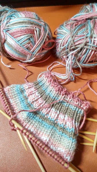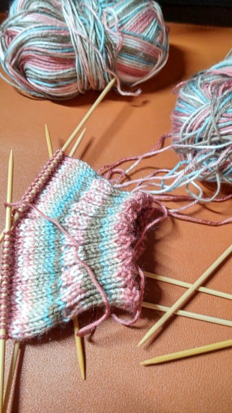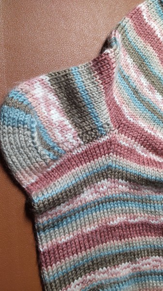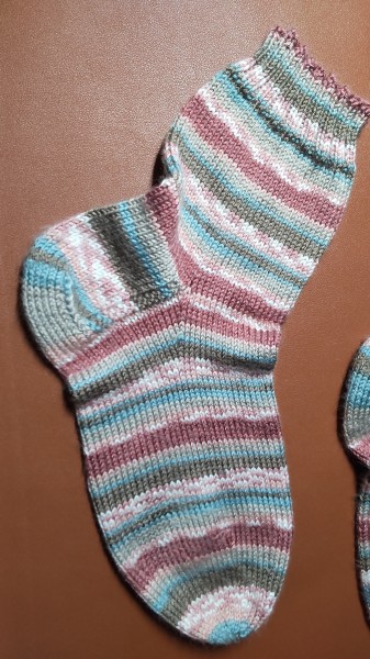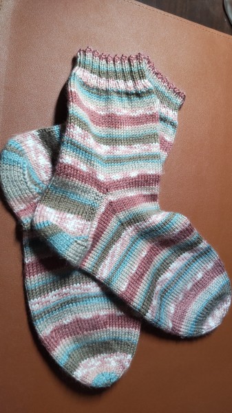 | ミルフィムソックヤーンで、自分用の靴下です。 うちにはたくさんソックヤーンがあるからと、手を出さないようにしていたのですが、 私の好きなピンクの入ったカラー№2を見て買ってしまい、 それならば春の靴下にしようと、編み始めました。 出来上がっていたのに、完成作品にしていなかったことに気づきました。 何なら愛用しまくりです。 足が大きいのと、柄合わせのために4玉使用しました。 編み方はいつもの履き口から編んでいくマルティナさんのソックスの編み方です。 すっぽりとかかとを包んでくれるので気に入っています。 |