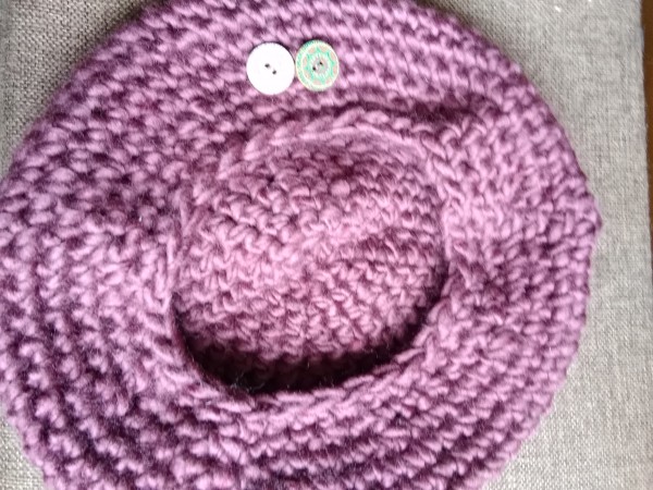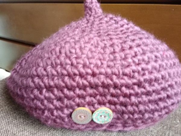 8ミリ針で編む、太糸のとんがり帽子 糸が太いとあっという間に完成ですネ