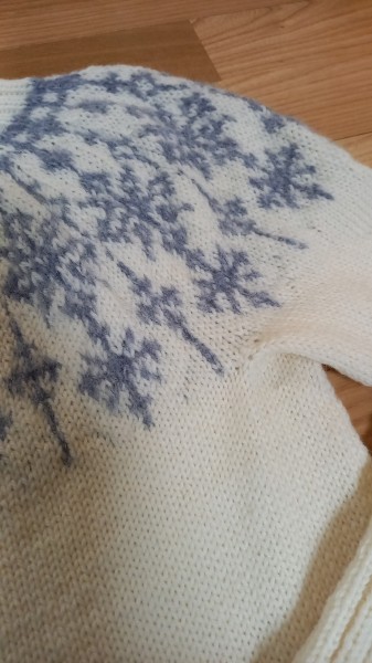 | 毛糸ピエロさんの配布しているKNIT ANGE2022-2023秋冬に載っていた「丸ヨークの編み込みセーター」です。作品は赤地に白い模様だったのですが、指定糸の白を持っていたので、模様編み部分の糸も代えて編んでみました。 | |
