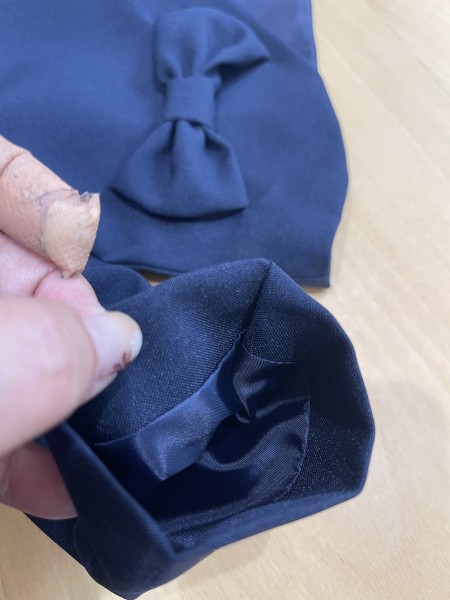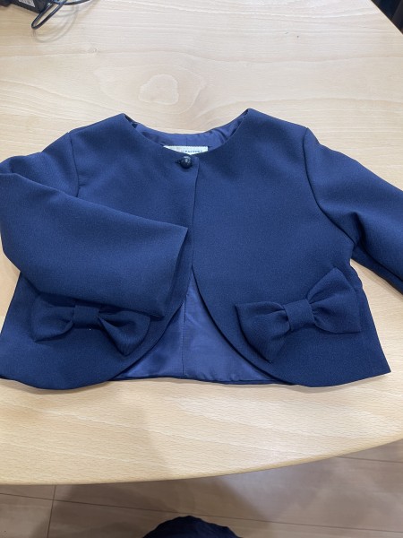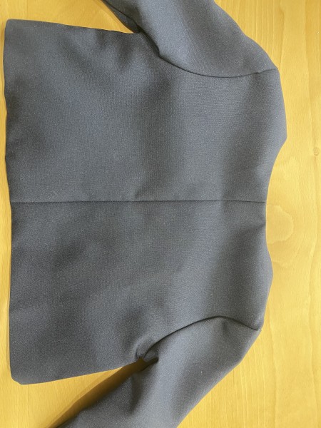 入園式に着ていけるようにボレロをつくりました。表と裏を同じサイズに裁断してそれぞれを縫ってから中表に合わせてひっくり返して仕上げる作り方をしました