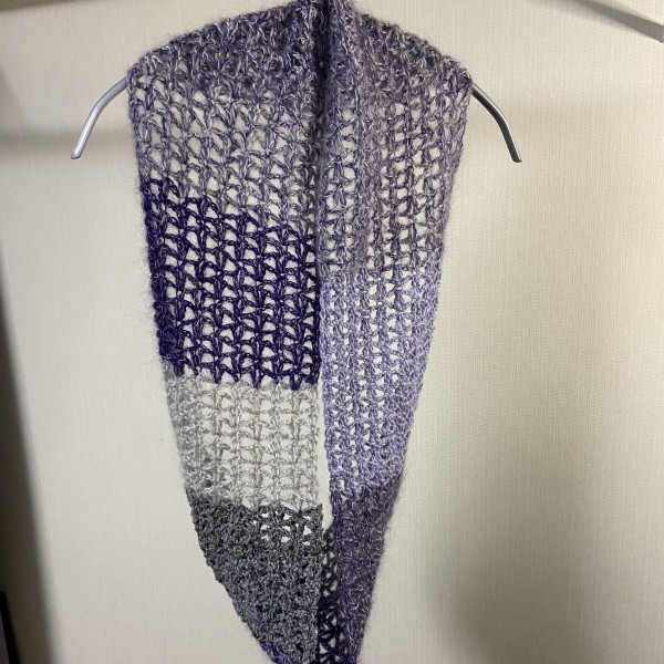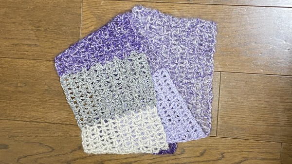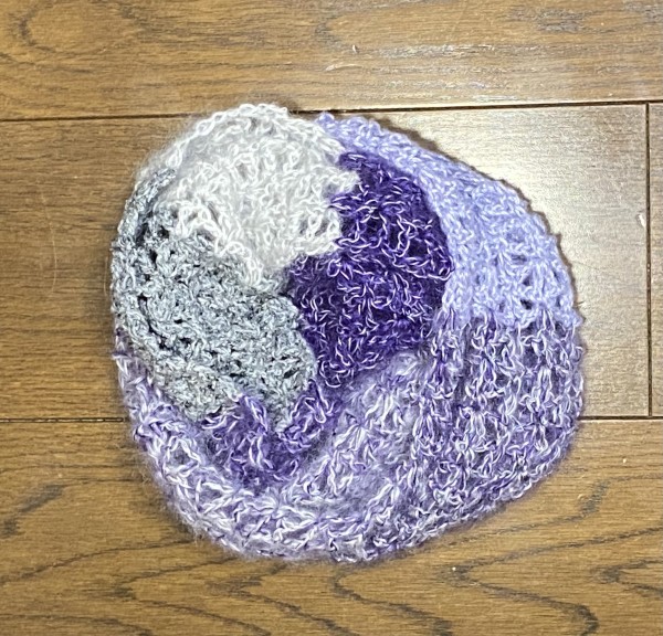 シルクハセガワさんのいろんな糸を引き揃えてランダムに編みつないでスヌードを作りました。とってもふわふわで肌触りが良いです。