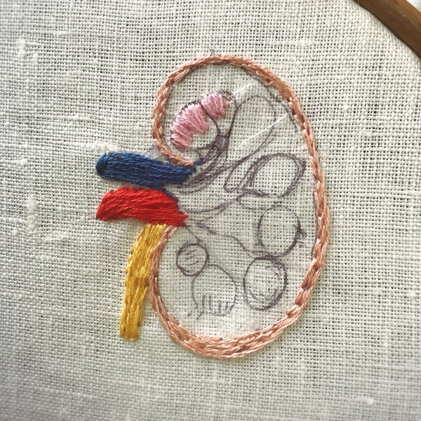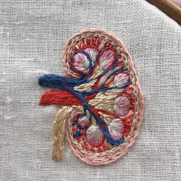 心臓を刺繍したら、リクエストをいただき、腎臓を刺繍しました。