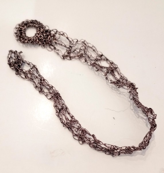 あたかもという、金属に見える糸でのブレスレットの試作。
