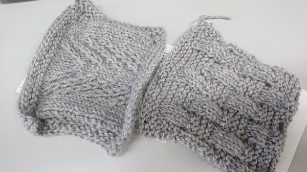 プロジェクトを開始。まずは模様編みに慣れるため太糸でスワッチを作りました。