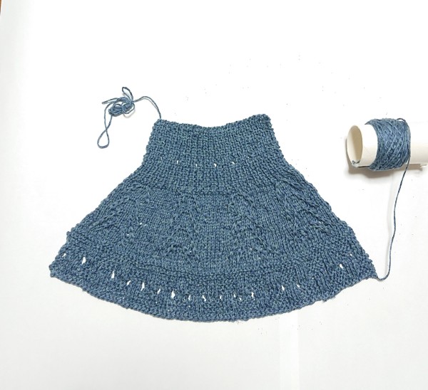 覚え書き:身長に合わせて5cm~6cmほどスカート丈を短くする計算をしてます。分散増し目部分は変更せず、あと3cm~4cm減どうするか