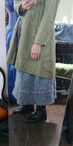 反省点は、スカートは面積が大きいためかモヘアをひき揃える事で以外と重みが出てしまった事、出来上がりの重量は予測して計画を立てないといけないと思いました。