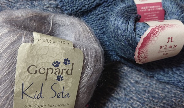 買い置きしてあったgepardのkid seta使用、暖かいふんわりツルツルした編み地になり、間に合えば、春物として使えそうです。