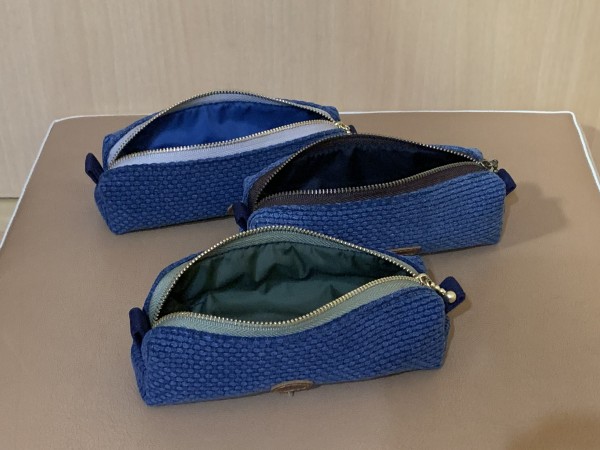 同じデザインで色違い(ファスナーと裏地)を3個作りました。