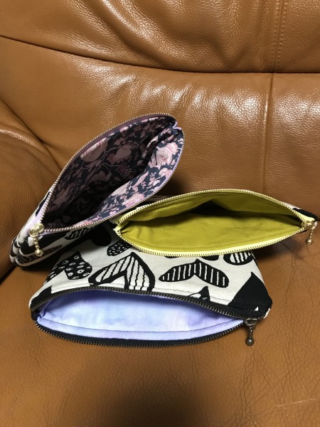 ふっくらポーチ。久々に再会するお友達へのプレゼントに。内布の色を変えて色違いで作成。どれを選ぶかはお楽しみ☆