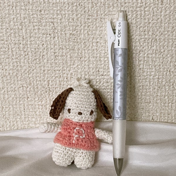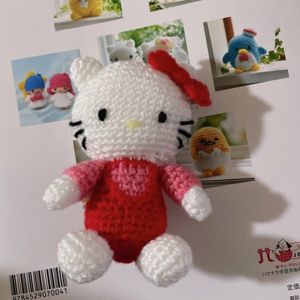 本は並太くらいの太さでしたが、マスコットみたいな小さい物が作りたかったので変えて編みました。キティも編みました。