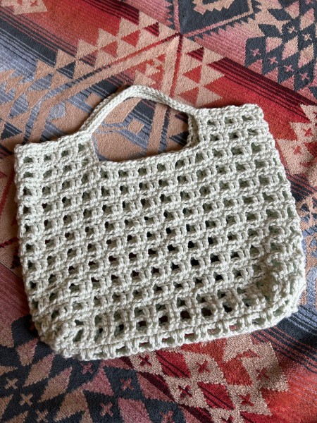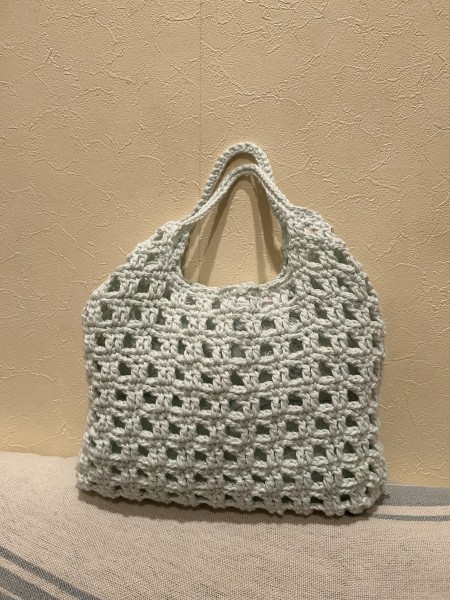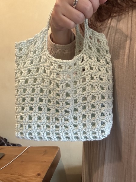 長編みの方眼がかっちりした素敵な編み地のバッグですね(^∇^)