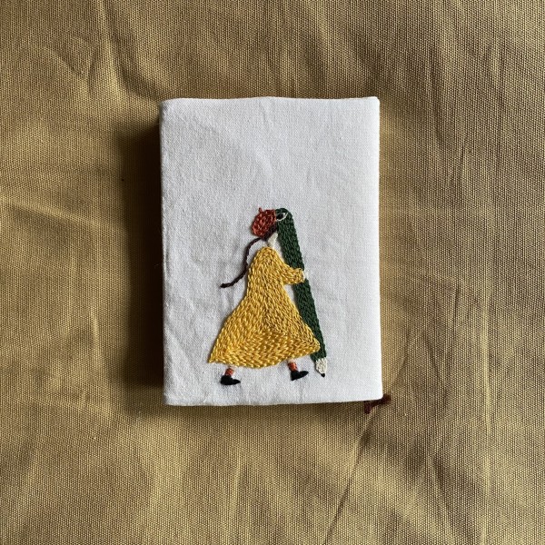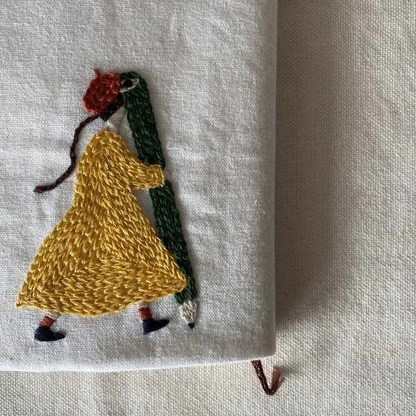 台湾に住む友人からいただいた素敵なポストカードを参考に、鉛筆を持つ女の子を刺繍しました。