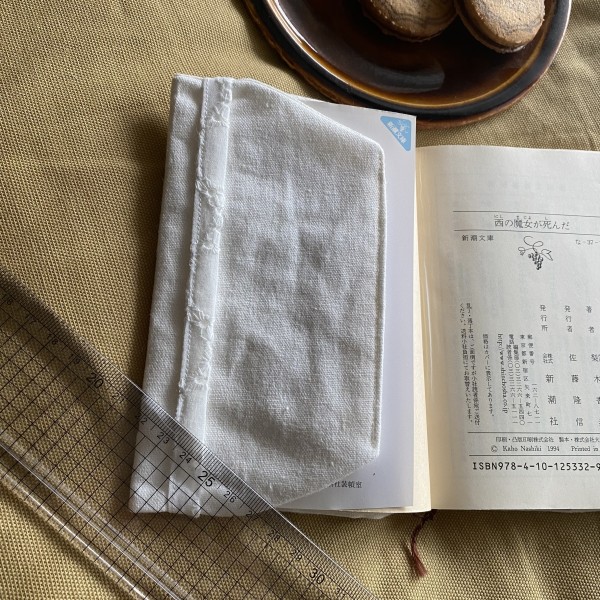 ふんわりと手に馴染むコットンリネン生地のブックカバーです。