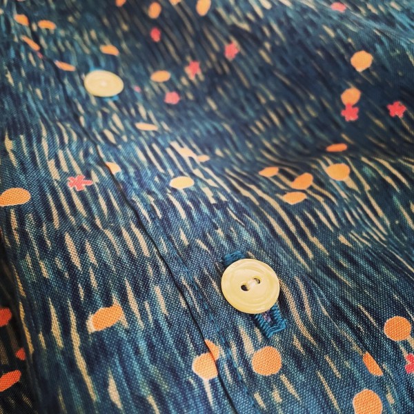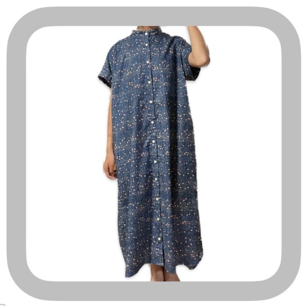 | 『シンプルで着やすいまいにち服』から、バンドカラーのシャツワンピースを縫いました。 Sサイズで作りましたが、150㎝には長めの丈です。 実は布を切るときに前見頃の端を縫い代無しにしてしまい(本当は6㎝!)急遽前たてを作って付けました。焦った〜 ユザワヤさんで購入したninaの布で、落ち着いた可愛さです。 |