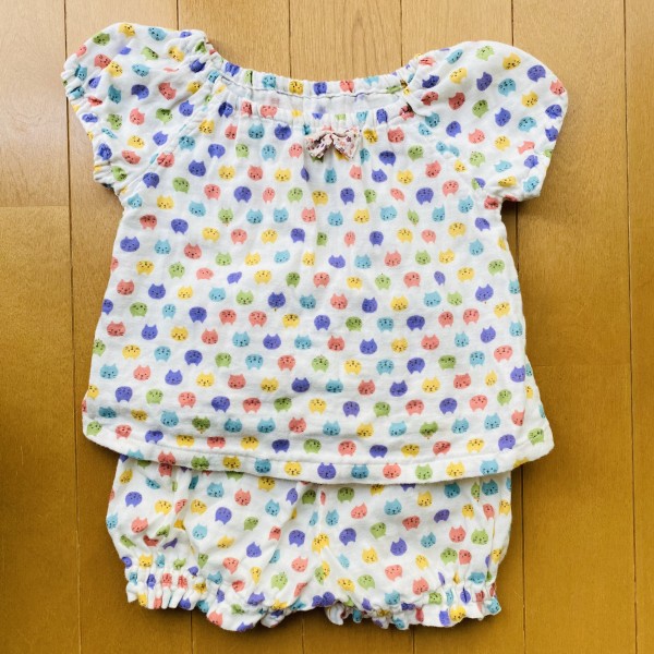 ダブルガーゼで作った上下のセット。カボチャパンツがふっくらして可愛い(๑′ᴗ‵๑)
