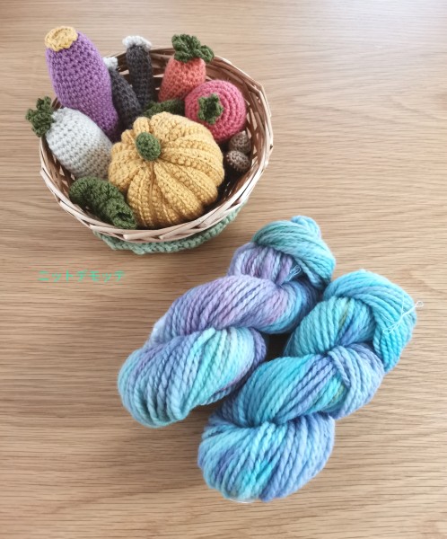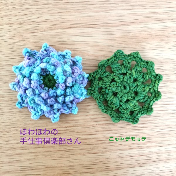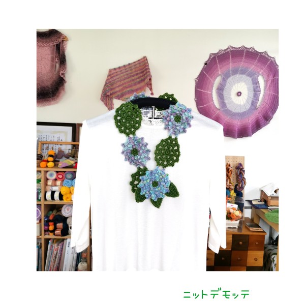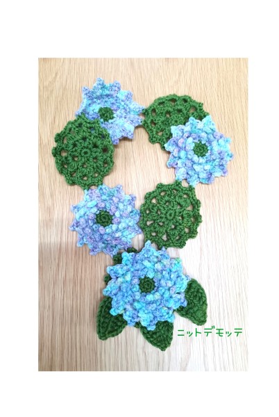 紫陽花の糸は紫陽花の花に見えるような編み方にしました。