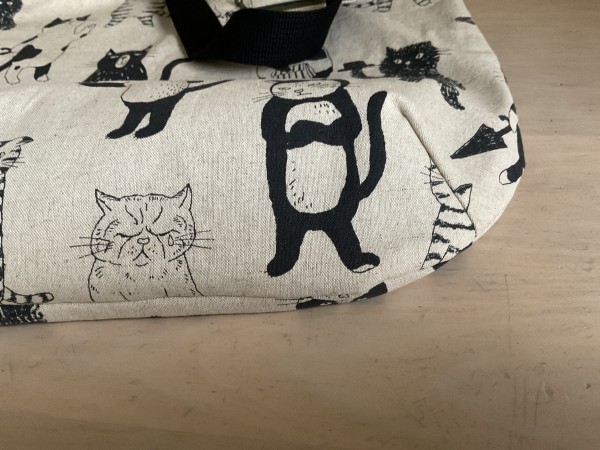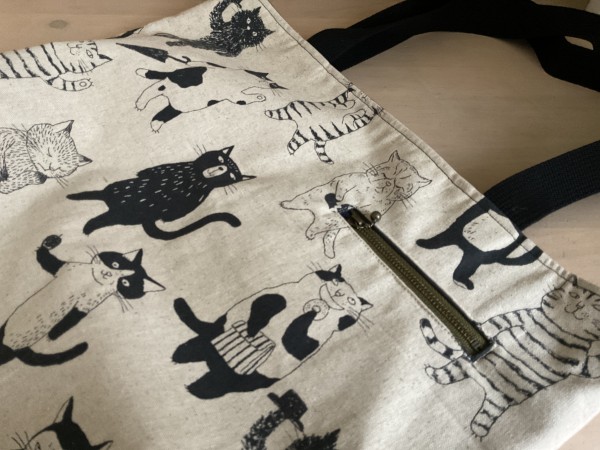 トート 共布で紐が取れずにかばんテープで作りました。10センチのファスナーポケットは鍵入れのつもり