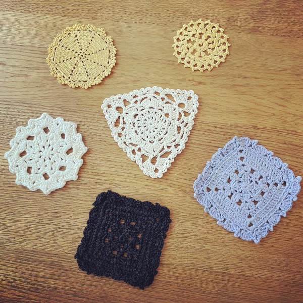 ネットの無料編み図を参考に、コットンリネン糸で三角ドイリーを編みました。