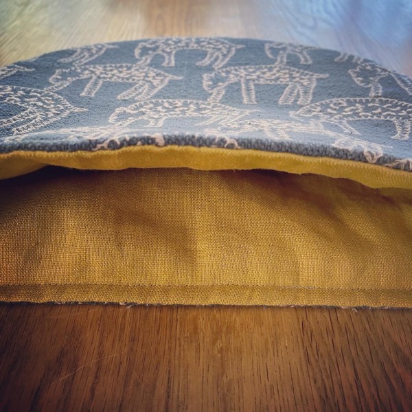 裏布には黄色のリネンを使用しています。タブにもその布を使いました。