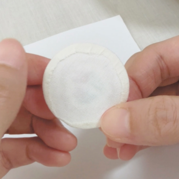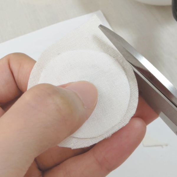 丸くくり抜いた布を2枚1組に貼り合わせ、